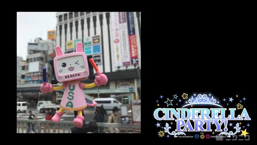 | CINDERELLA PARTY! CINDERELLA PARTY! from アイドルマスターシンデレラガールズ 퍼스널리티 : 하라 사유리 (혼다 미오 役), 아오키 루리코 (타다 리이나 役) 게스트 : 루 팅 (시오미 슈코 役) 방송처 : 니코니코 생방송 최초 방송일 : 2014년 10월 8일 방송 주기 : 매주 수요일 22:00~22:30, 방송 후 15분 가량의 유료 방송 |
